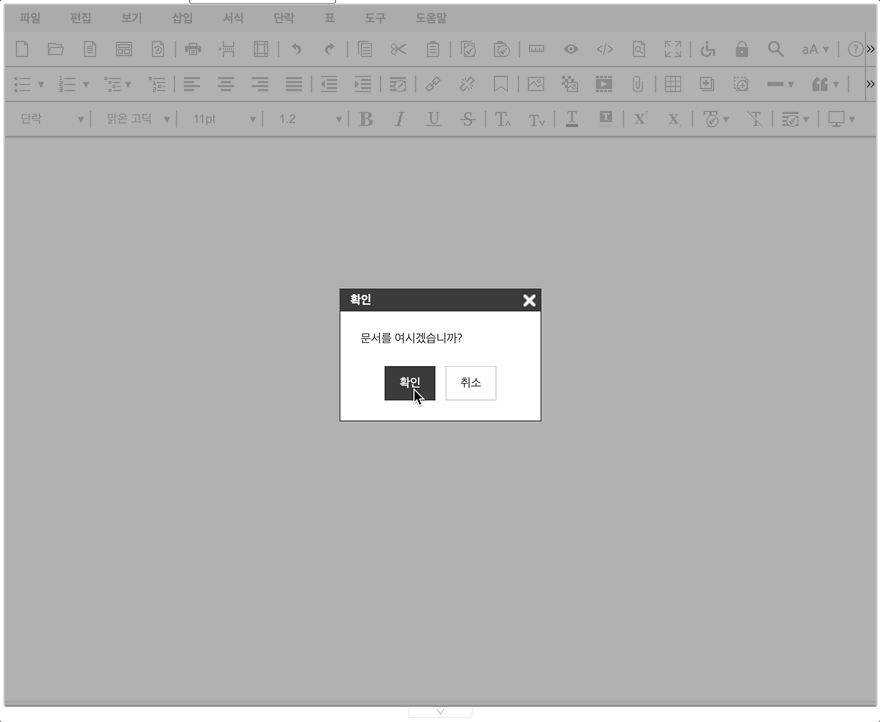 'editor.import.selectArea.word' 옵션을 설정하여 DOC, DOCX, HWP 문서를 임포트 할 때 원하는 영역을 선택하여 임포트 할 수 있습니다. (기본값 false)