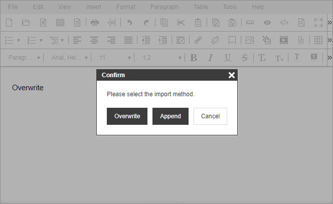 Set 'editor.import.alwaysOverwriting' option to have imports always overwrite without the confirmation dialog window. (default - false)