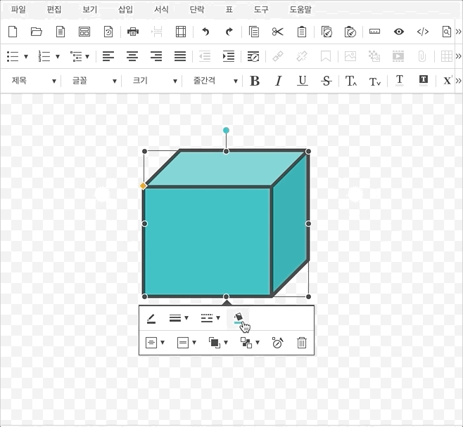 도형의 경우 채우기, 선 색상을 각각 설정 할 수 있습니다.
