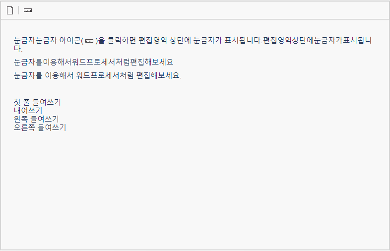 눈금자눈금자 아이콘( )을 클릭하면 편집영역 상단에 눈금자가 표시됩니다.