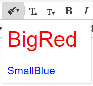 'editor.toolbar': ['new','open','|', 'paragraphStyleWithText', '|', 'fontFamilyWithText', '|','fontSizeWithText', '|','bold', 'italic', 'underline', 'strike', '|','fontColor', 'fontBackgroundColor']