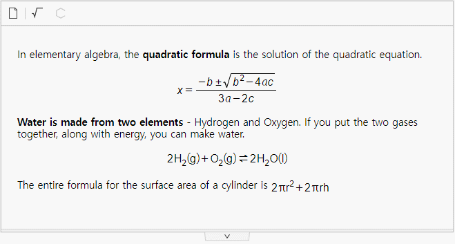 - 수식 편집 플러그인이 추가되었습니다. 이제 수식, 화학식을 삽입하고 편집할 수 있습니다.
