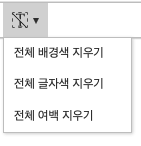 • 전체 서식 지우기 기능에는 전체 배경색 지우기, 전체 글자색 지우기, 전체 여백 지우기 기능이 제공됩니다.
