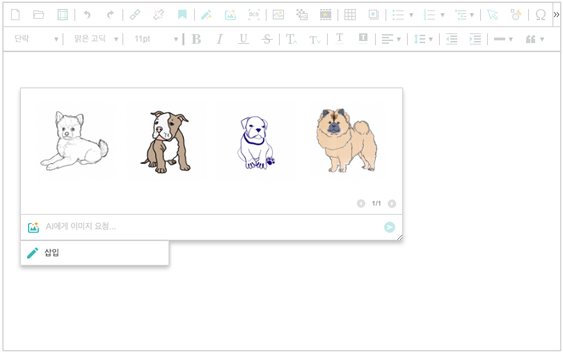 AI에게 이미지를 요청하는 버튼을 툴바 영역, 벌룬, 바로 삽입, 메뉴 영역에 추가할 수 있습니다.