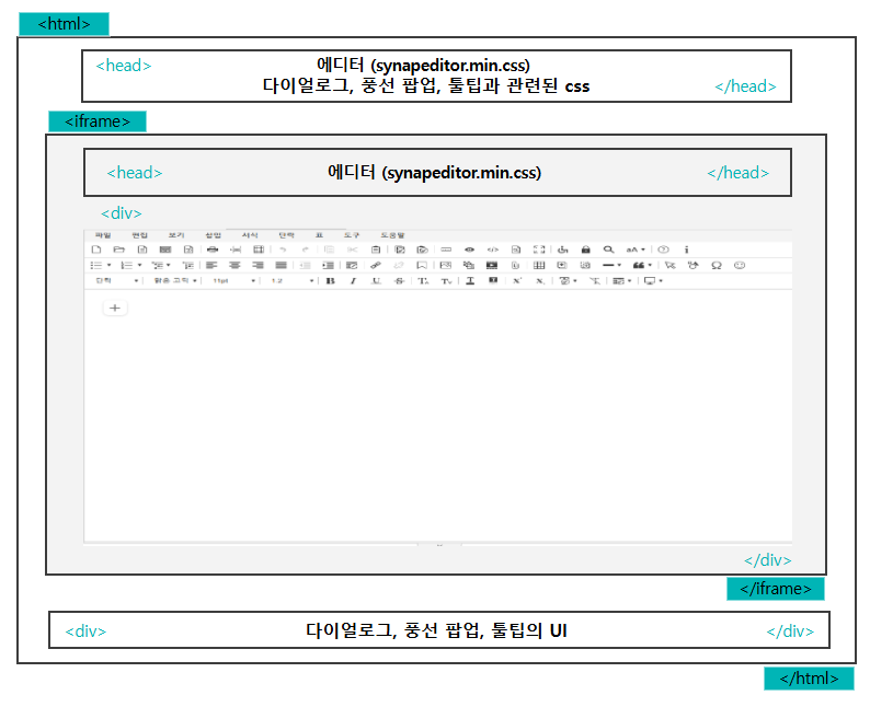 Iframe에디터가 <iframe> 안에 위치합니다.